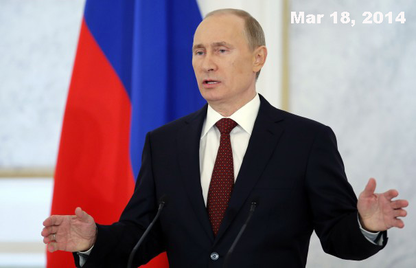 […] said nothing new. Here’s a quote from his March 18 speech to the Russian Duma about the then annexation of Crimea into Russia (see Putin Lashes Out at Washington Treachery, Mar […]