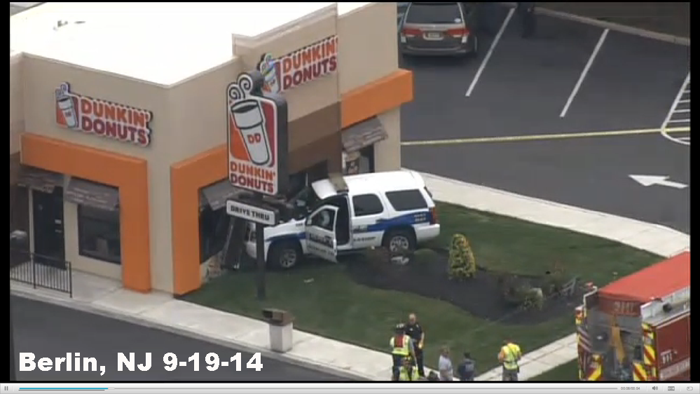 A police SUV crashed into a Dunkin Donuts store Friday morning in Berlin, New Jersey, NBC Philadelphia reported today.
