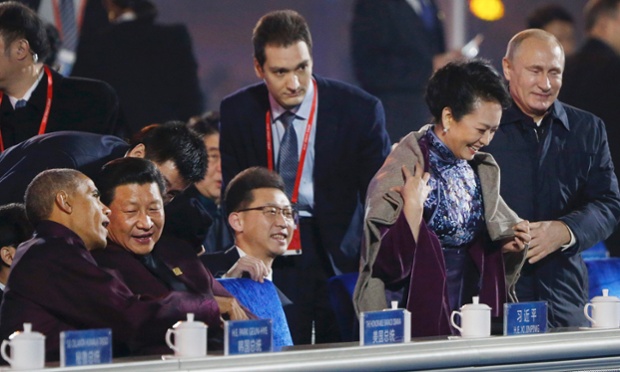 But at the gala event, Putin was entertained mostly by the Chinese president’s wife, while Xi Jinping buttonholed Obama on the other side.