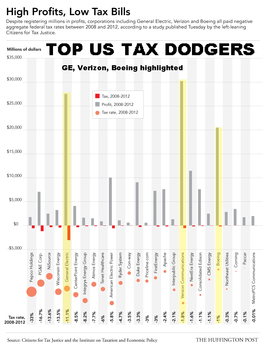 Meanwhile, many of the “slave owners,” the top US corporations, are getting off scot-free. Like these 26 large companies that paid NO TAX in the five years between 2008-2012.
