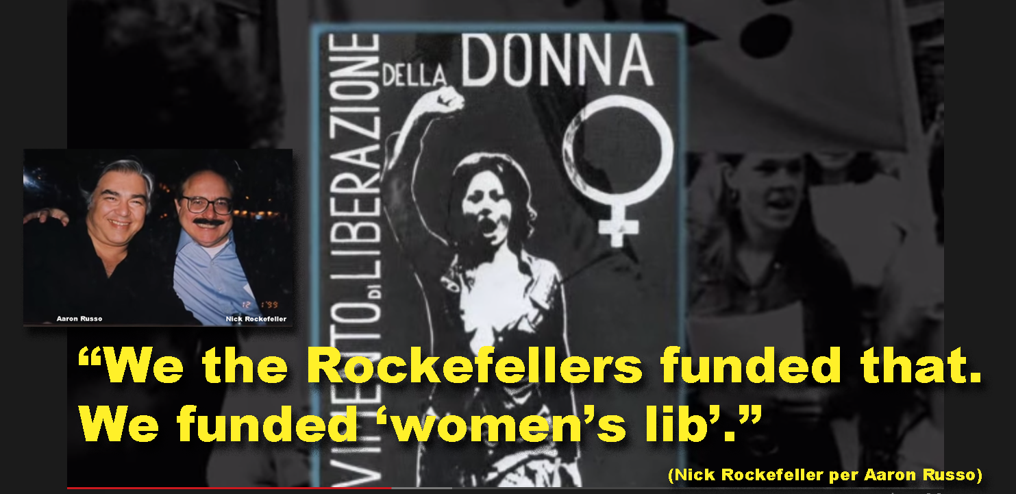 It was that the Rockefellers, the kingpins of the New World Order in America, funded the “women’s lib”, and thus the destruction of the American family.