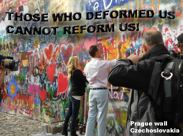Prague, May 1996 (reconstruction of the wall sign I saw)