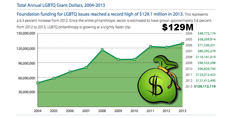 Take a look at this chart of Lesbian, Gay, Bisexual, Transgender and Queer Grant-making by U.S. Foundationsm for 2013: