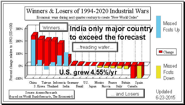 That, of course, had nothing to do whatsoever with the Economist/World Bank 1994 forecast of winners and losers over the next 25 years. Except to point out the deficiencies and inadequacies of long-term predictions that do not take into account new trends that may shape and change the world.