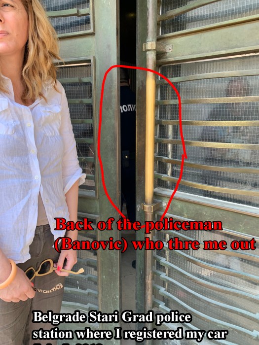 On the way out of the police station, we saw the policeman in the hallway. I asked for his name. He was reluctant to give it even though the name tag read BANOVOĆ.