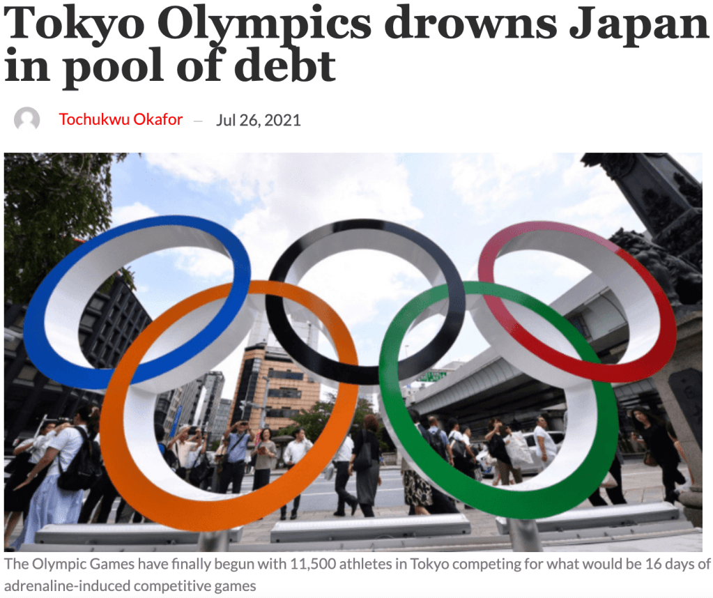In short, the government of Japan has sacrificed the health and financial well-being of its people so that the big multinational companies and TV networks could line their pockets from this fan-less media spectacle which the Olympic Games have become.