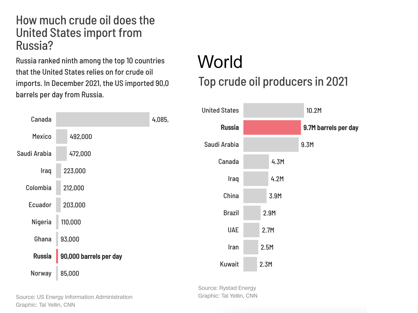 Why? Because Europe imports about 60% of its oil from Russia vs. only about 3% for the US.