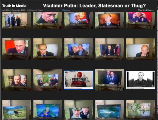 Take a good look at these 80 photos of Putin. I took them while watching this PBS documentary. They show an evolution from a little Soviet apparatchik to one of the three most powerful people on earth. That took guts, cunning and ruthlessness. I would not want to bet on this guy losing the war against Ukraine.