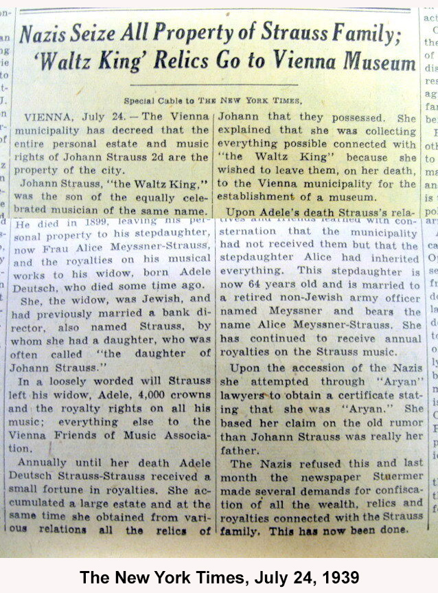 Even the estate of Johann Strauss, the famous “Waltz King” of the 19th century, fell victim to Nazi confiscations.