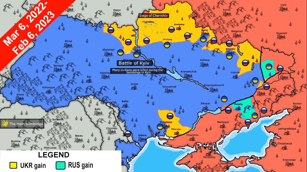 In the meantime, Ukraine has gotten stronger and bolder. Instead of attacking the supply routes from the West right from the start, Putin and his military have been fighting a WW I-type trench war against the Ukrainians. The result is pathetic for a military which has had such a technological advantage over the enemy all along.
