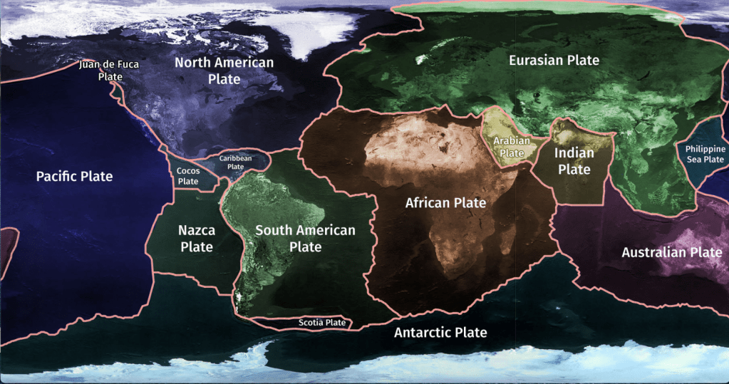 And they occasionally stir and shift. The continental plates are constantly moving and shifting. And where they collide and rub against each other – bang! Earthquakes and tsunamis happen.