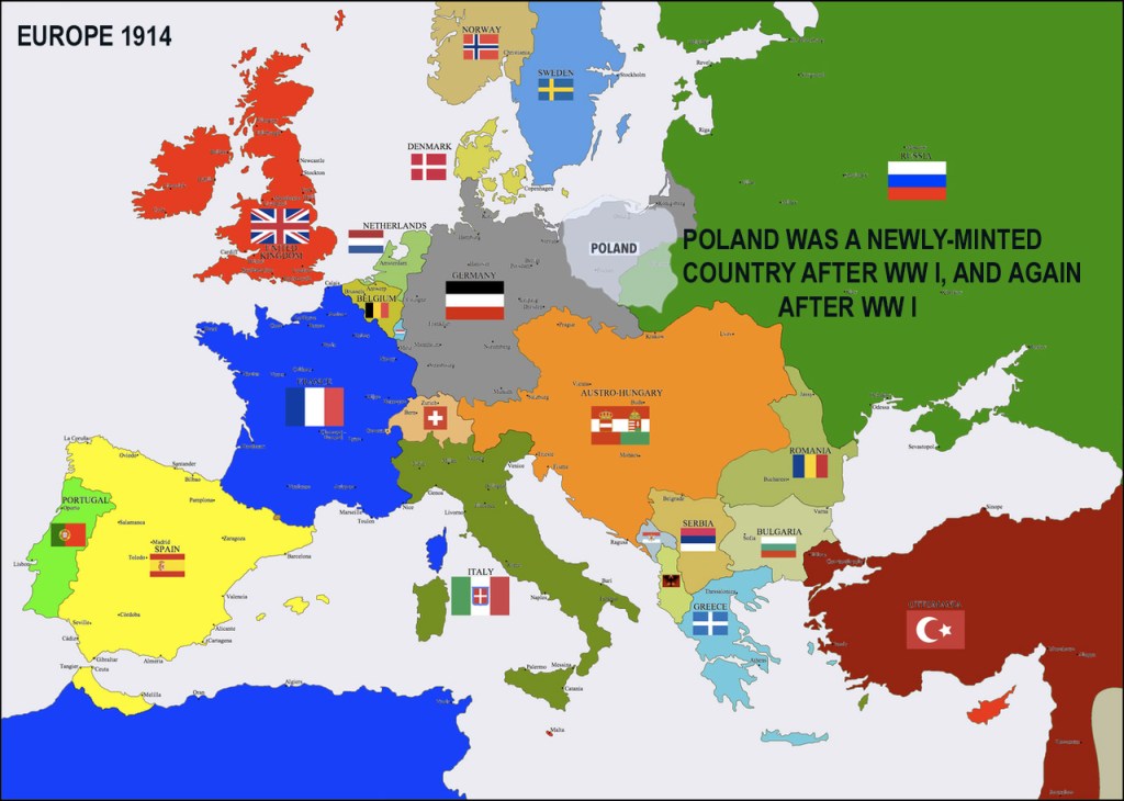 Or even better, to show the Polish prime minister this map of Europe in 1914 on which his country did not exist at all: