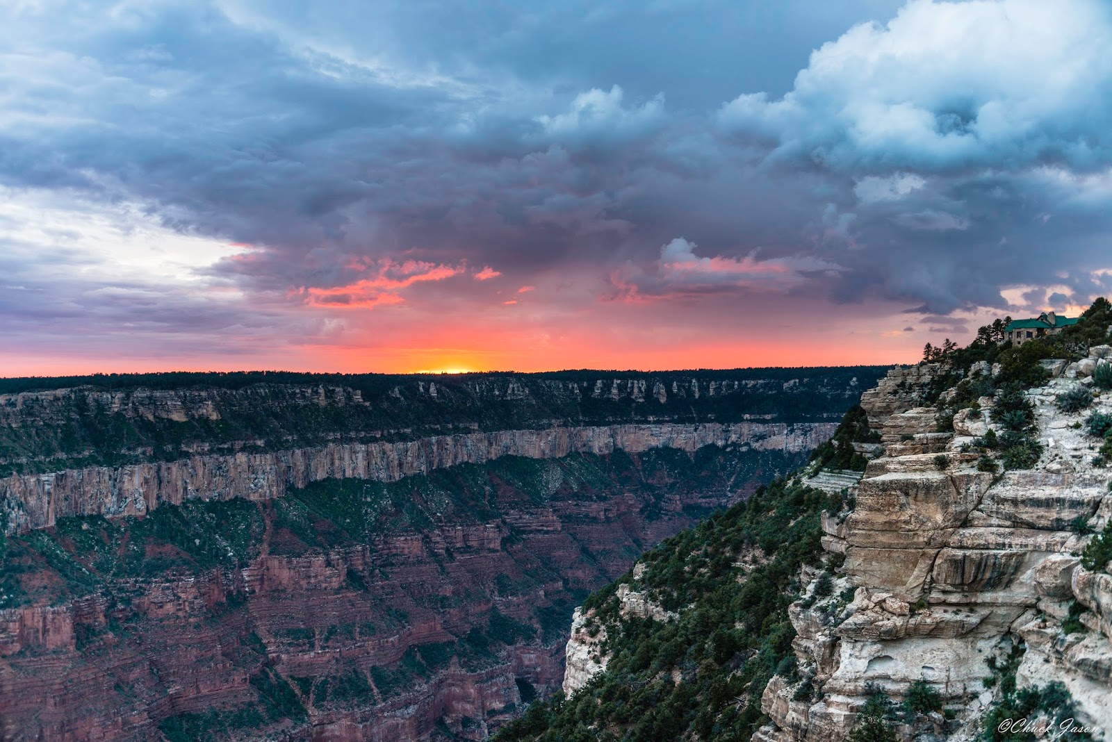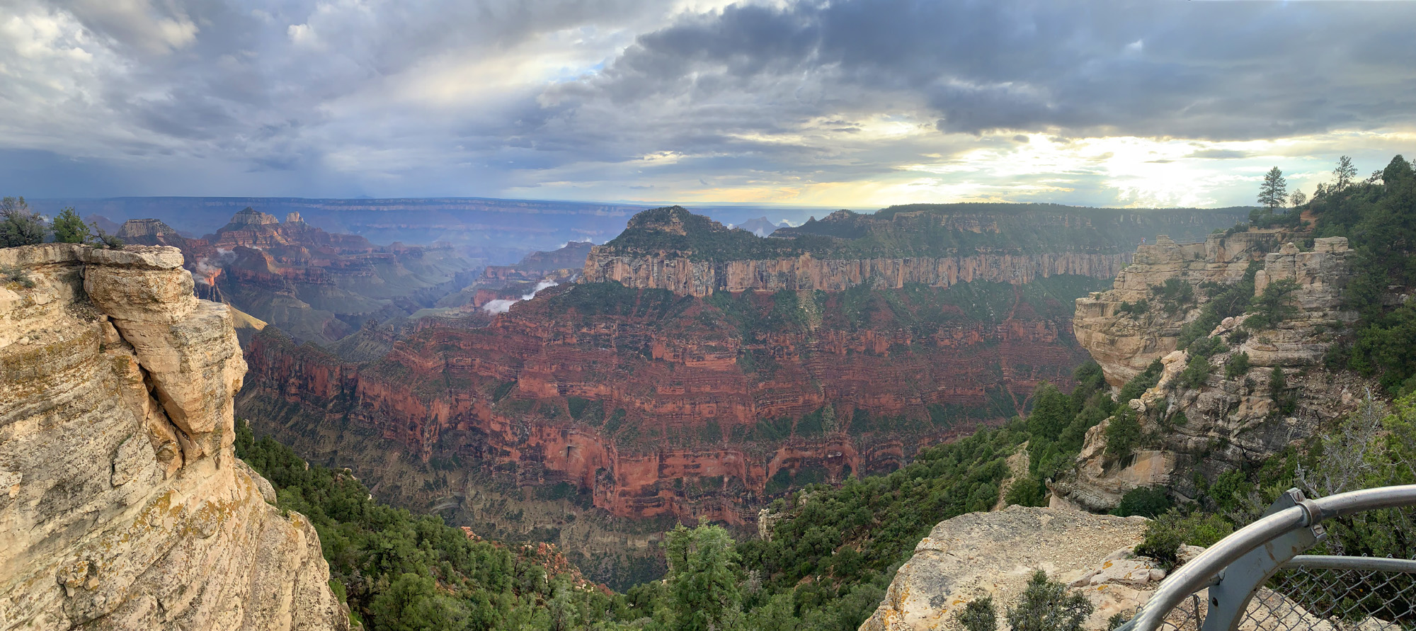 We arrived at the North Rim about an hour before sunset, snd checked in at the historic Grand Canyon Lodge. That’s the only accommodation available in this National Park operated by the federal government. Then we went for a short walk along the canyon rim, snapping pictures along the way.