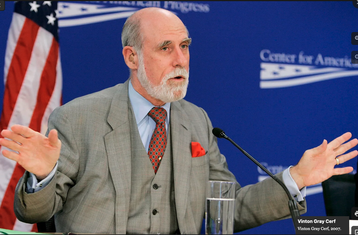 But that’s only one dimension of the internet – the software part. The physical network was first created by two American scientists – Vint Cerf and Bob Kahn. The Internet is fundamentally a collection of disparate networks – that’s why it’s called the internet. his required the introduction of TCP/IP, a communications protocol. Cerf and Kahn developed the protocol in the early 1970s. Kahn worked for ARPA – the U.S. Department of Defense agency that funded the ARPAnet – and Cerf was an assistant professor at Stanford University.