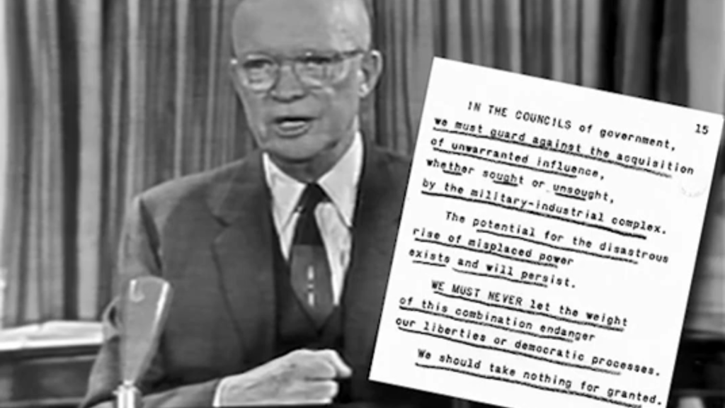 In the councils of government, we must guard against the acquisition of unwarranted influence, whether sought or unsought, by the military-industrial complex. The potential for the disastrous rise of misplaced power exists, and will persist.”