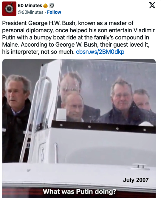 Vladimir Putin:“The third moment, a very important one, is the moment when the US missile defense (ABM) system was created. The beginning… Moreover, after I was invited by Bush Jr.’s father, Bush Sr. to visit his place on the ocean (Kennebunkport, MA, July 2007), I had a very serious conversation with President (GW) Bush and his team.”I proposed that the United States, Russia and Europe jointly create a missile defense system… I suggested working together – Russia, the United States, and Europe. They said it was very interesting.