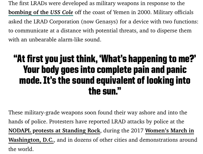 And here’s what that feels like in the words of one New York City resident who was exposed to an LRAD ray in 2014: