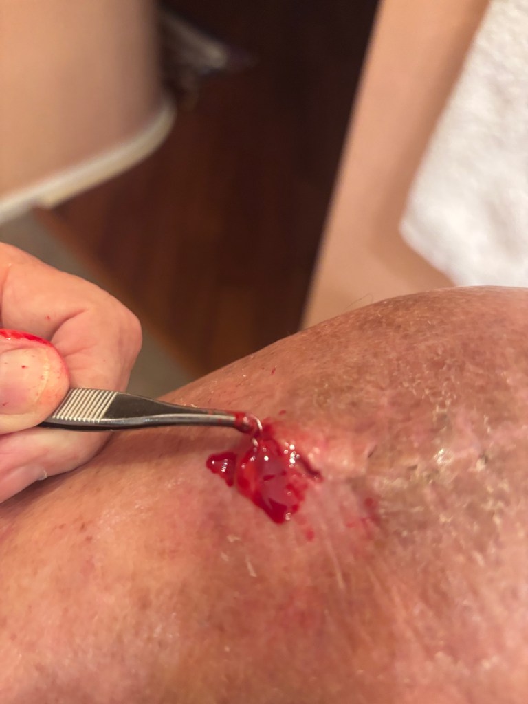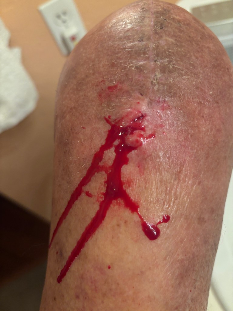 On January 4, 2026, I noticed something shiny at the top of the incision on my left knee.