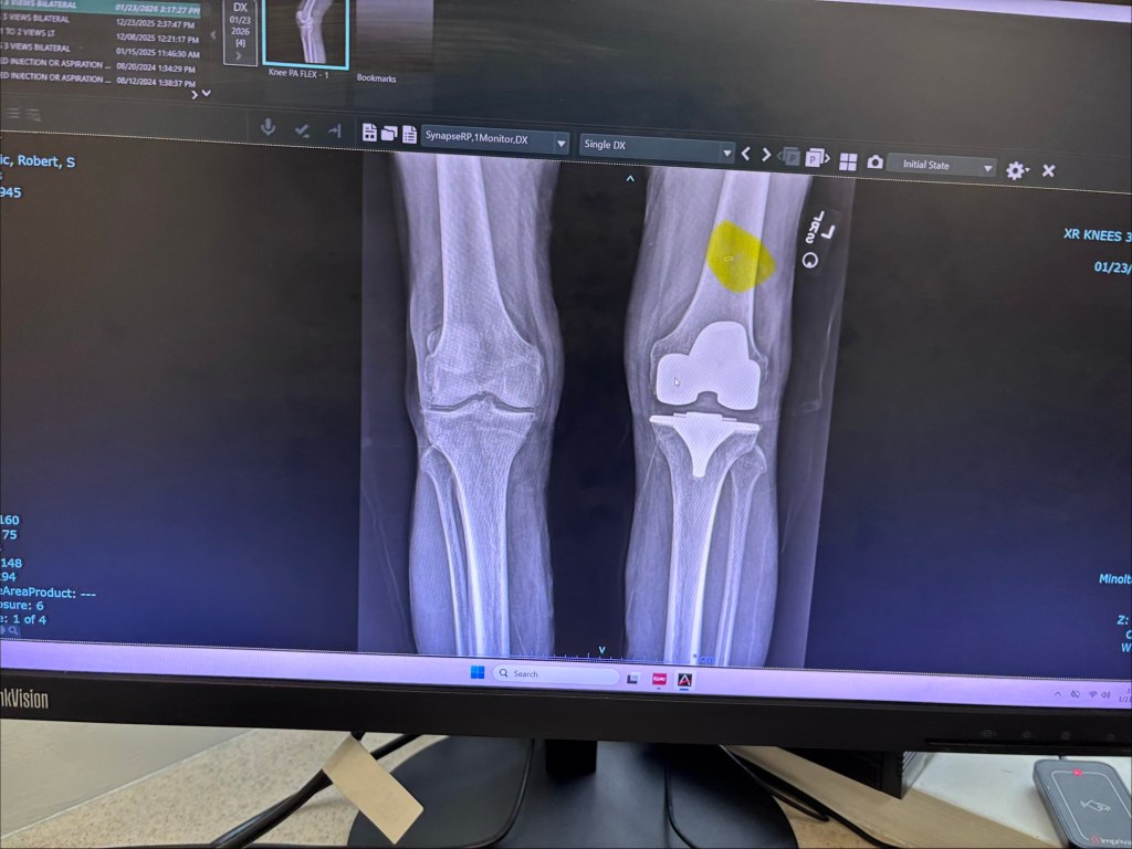 The week of January 18, 2026, I felt a sharp pain when I touched a spot above the knee and the surgical incision. Immediately, I suspected another forgotten staple. So I requested and appointment with my surgeon, Dr Moussa, and another X-ray of the knee.
